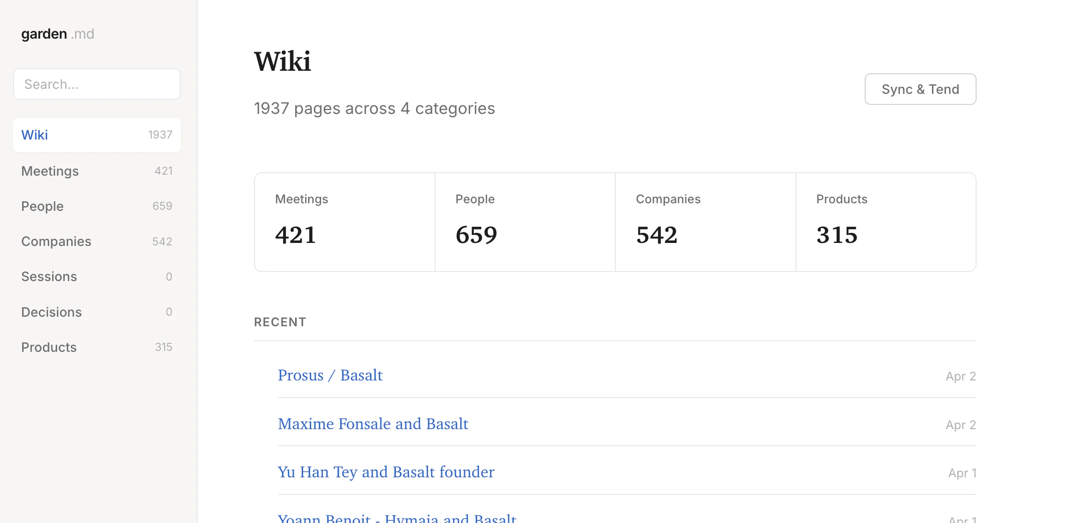 Garden is a CLI tool that syncs your meeting transcripts and builds a company wiki that lives on ...