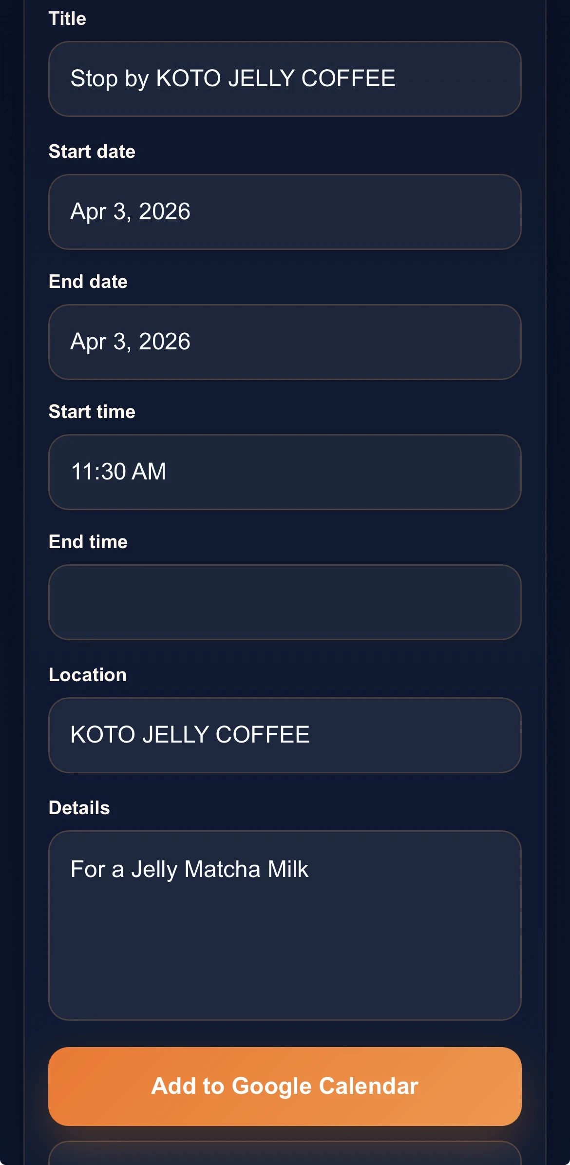 Paste a message and let AI turn it into a calendar event. No forms, no setup — just paste and go....